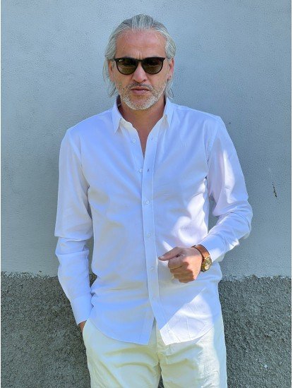 2377-Guaress Kırık Beyaz Yaka Gizli Düğmeli Slim Fit  40/1 Lycra Gömlek (127-01)
